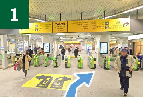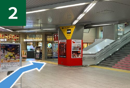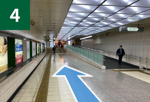 2-3.中央改札から出て右に曲がり階段の左脇の地下通路を進みます。